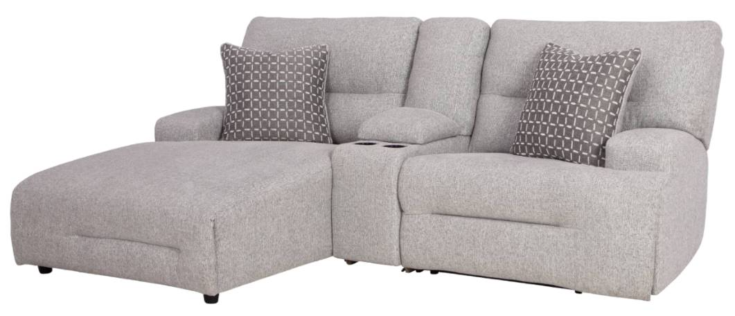 Includes 3 Modular Pieces: Left-arm facing power reclining back chaise, console with storage and right-arm facing power recliner