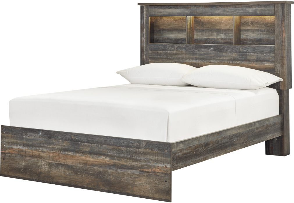 When merged in just the right way, rustic and industrial styles can make one happy marriage. Case in point: this full bookcase bed. A refined take on barn board beauty, its complex, replicated wood grain showcases hints of burnt orange and teal tones for a sense of weatherworn authenticity. Three open cubbies lined with a dimming LED light strip keep bedtime reads top of mind. Mattress and foundation/box spring available, sold separately.