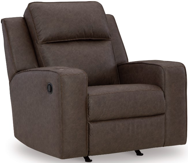 Indulge your lust for comfort and love for contemporary design with this rocker recliner. Made for easy everyday living, it’s upholstered in a heavyweight padded faux leather and accented with contrast jumbo stitching for fashion-forward flair. Sleek track arms elevate the look with a touch of modern sensibility.Read More