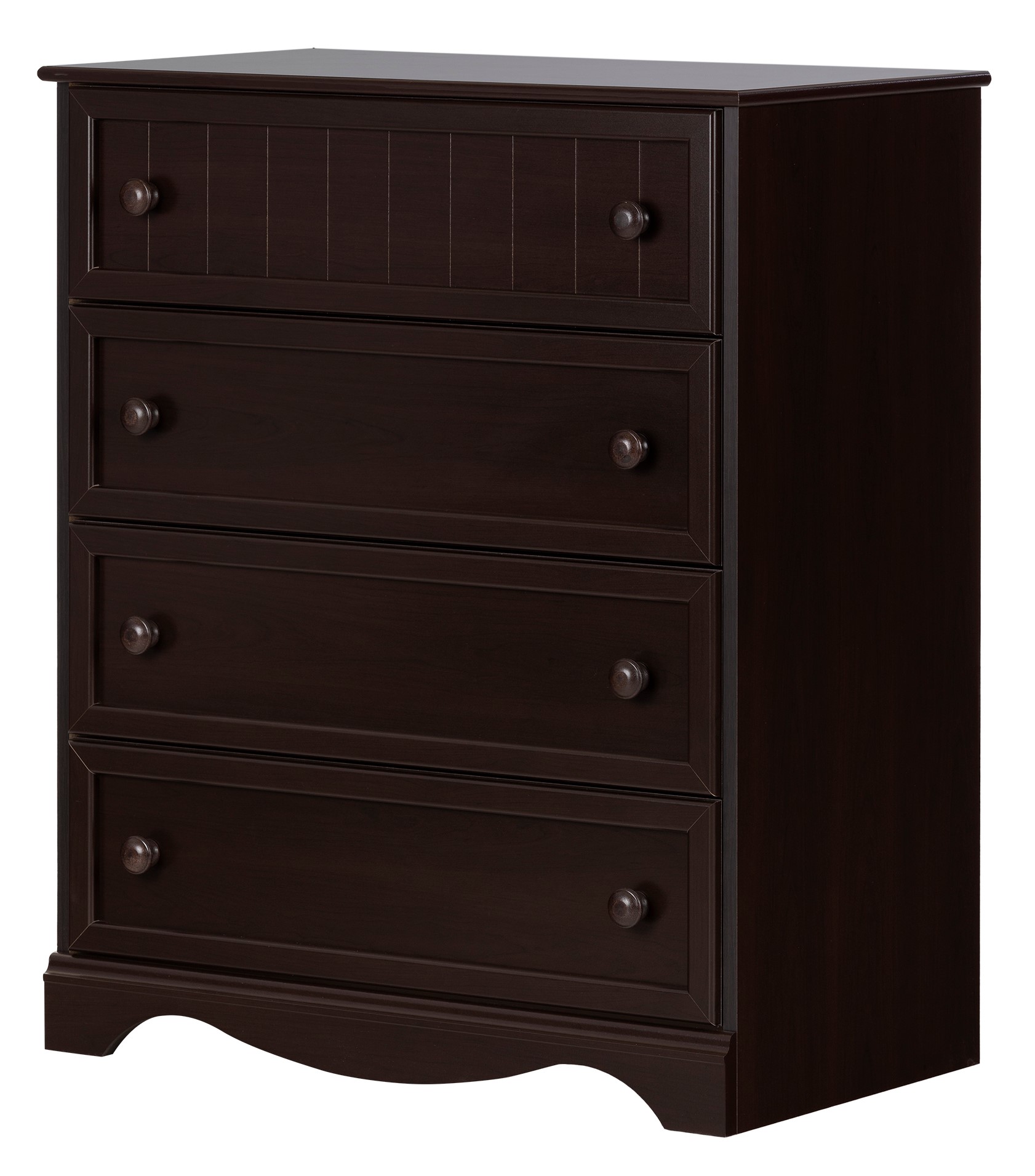 This Savannah 4-drawer dresser has a timeless look and blends in easily with any decor. The country lines are softened by the curved kick plate, and round wooden knobs add character and value to the furniture. The neutral, country style makes it suitable for kids' bedrooms, providing plenty of storage space in this attractive piece of furniture.Read More