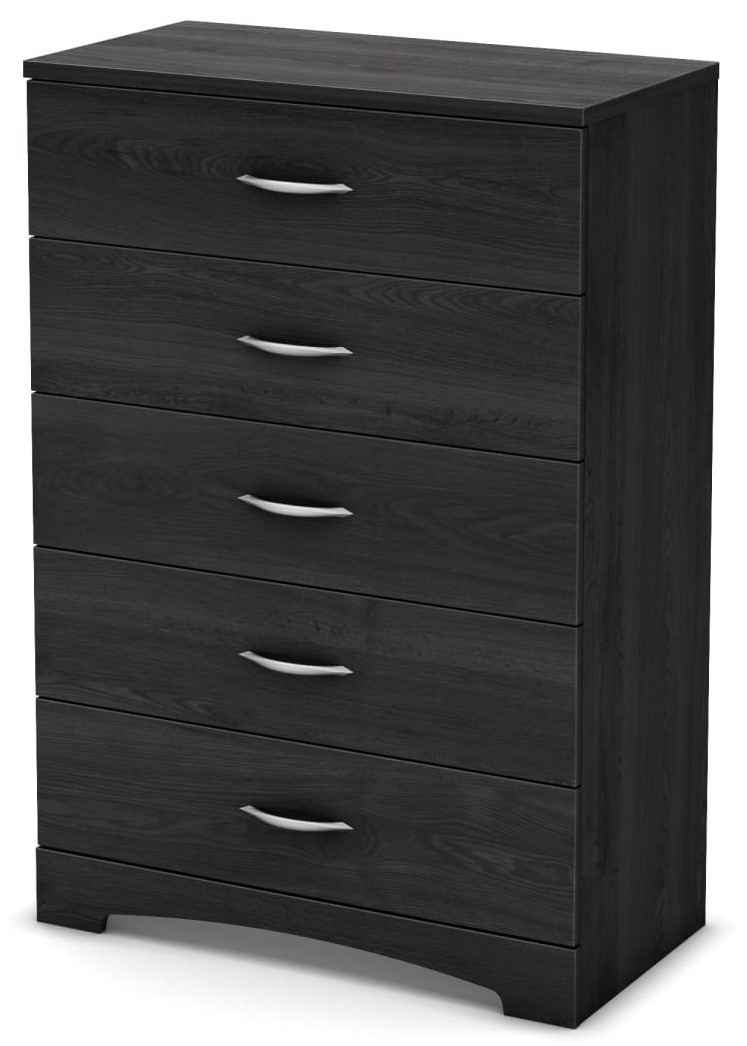 This Step One 5-drawer dresser has a timeless look and blends in easily with any decor. The contemporary lines are softened by the curved kick plate, and metal handles add character and value to the furniture. The neutral, modern style makes it suitable for men’s and women’s, providing plenty of storage space in this attractive piece of furniture.Read More