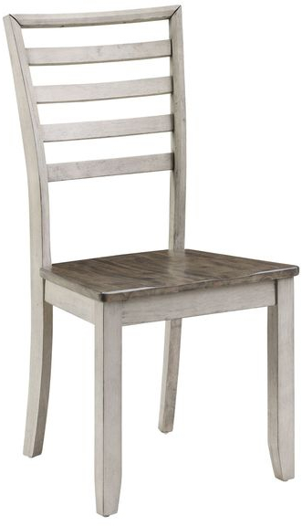 The Abacus Side Chair represents relaxed casual styling in a two-tone smoky alabaster and smoky honey finish. The ladderback design is curved for sitting comfort and the wooden seat is shaped for comfort. The transitional style works well with farmhouse, contemporary or transitional styles and the neutral finish complements many interiors. Pair with the Abacus Dining Collection or use as a standalone guest or desk chair.