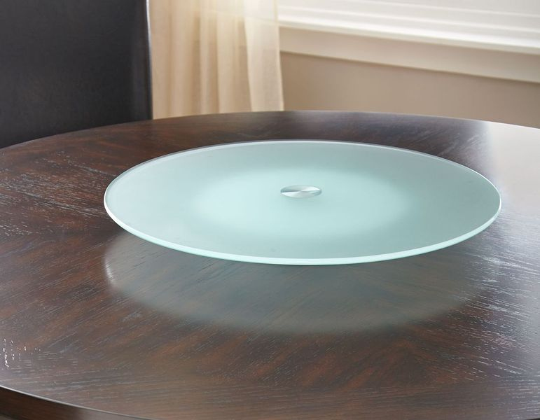 The 22-inch Avenue Lazy Susan makes passing the vegetables a breeze with its rotating turntable design. This Lazy Susan is built to work well with smaller round or square tables and features frosted tempered glass to complement any design style.