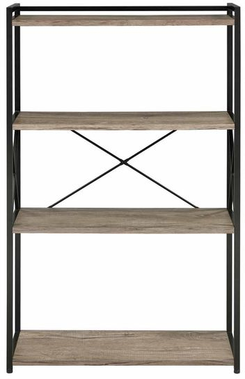 Gray wood look with black geometric metal accents give the Bookcase a modern rustic feel for today’s contemporary offices or homes