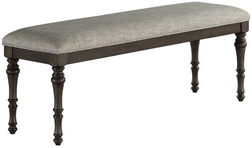 Linnett offers traditional styling with a modern twist in this upholstered bench that is as comfortable as it is stylish. Turned legs moor the piece in vintage styling but the unique treatment adds an exotic flair to the design. Pair with the Linnett dining table to add seating for multiple guests or use as a hall piece or bedroom bench at the foot of the bed.Read More