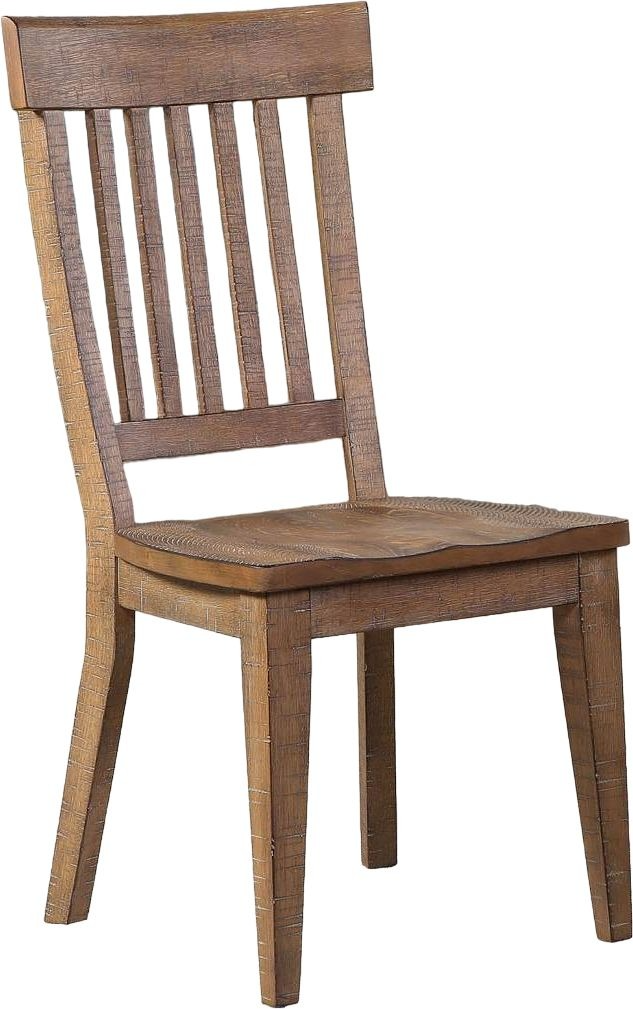 Rustic Ranch styling in a distressed finish with a shaped wooden seat for extra comfort, this Riverdale Side Chair features a schoolhouse back and heavy distressing that gives the chair an heirloom feel.