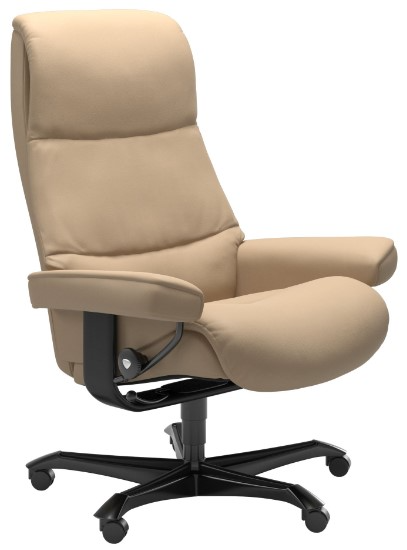 Enjoy your time at the home office! Soft cushioning and sublime support help you focus and work more efficiently. Our Home Office Chairs have the same functions as our Stressless Recliners: offering good lumbar and head support whether you sit upright or you recline. The Stressless View Home Office chair has wheels that make it easy to move around and you can adjust the seat height to find the perfect position. Also, it doesn't hurt that the chair blends in perfectly with the rest of the interior. After all, in your own home office, you're the boss.