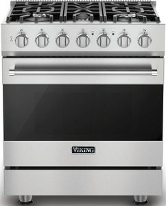 Viking® 3 Series 30" Freestanding Gas Range-Stainless Steel with 4.0 cu. ft. total capacity, SureSpark™ ignition system and continuous grateRead More