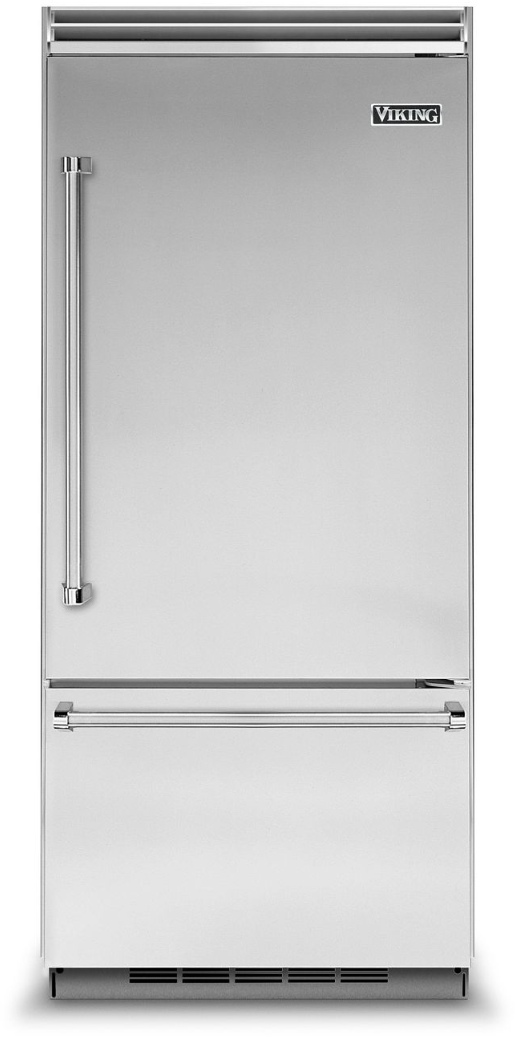 The Viking 5 Series Refrigeration line complements the professional-style kitchen in both form and function. Viking's exclusive Plasmacluster Air Purifier uses advanced technology to eliminate bacteria, mold, and odors to enhance food preservation. The Professional bottom-freezer refrigerator features a drawer-style freezer compartment to store frozen foods neatly.Read More